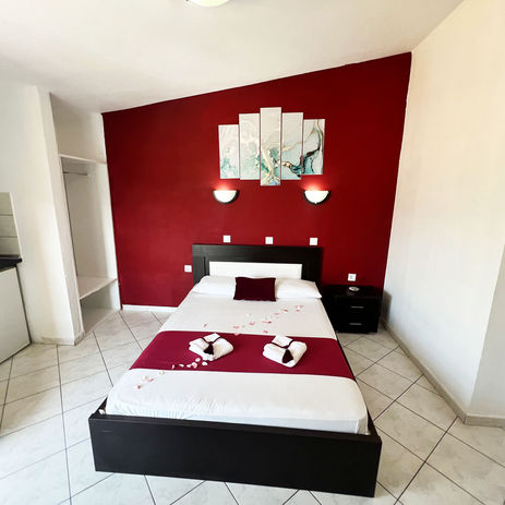 Double Studio with Mountain & Sea View - First Floor include one large double bed. They can accommodate two guests.
